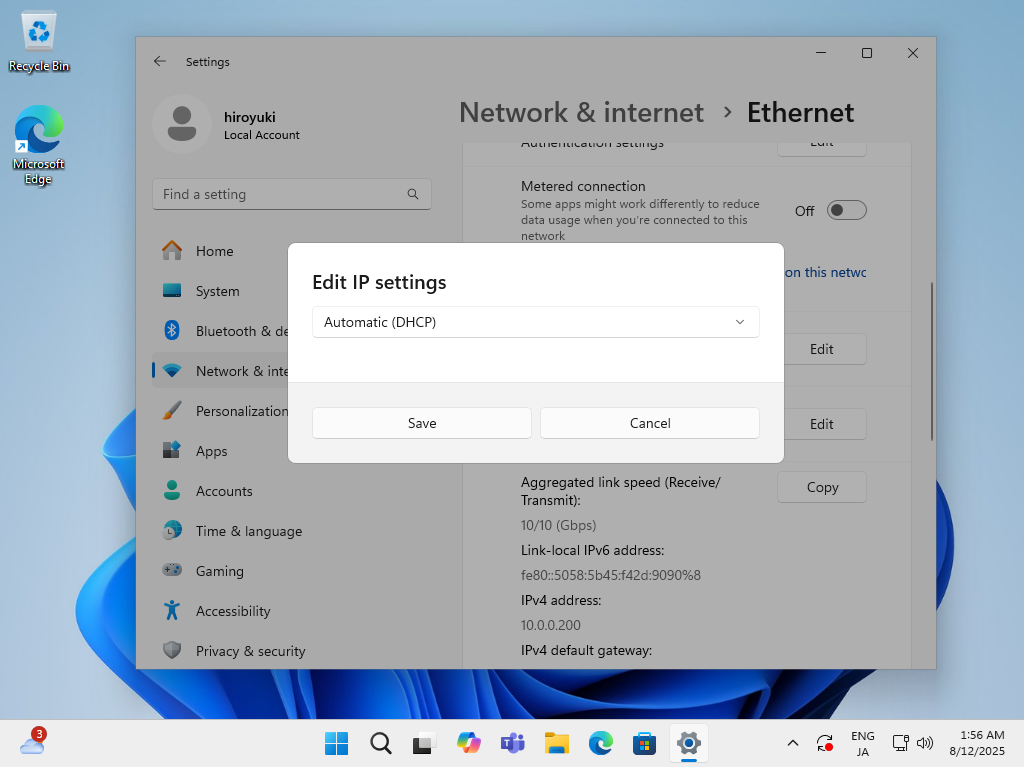 | [4] | If clicked [Edit] button on previous section, following window is shown. Select [Automatic (DHCP)] and save. |